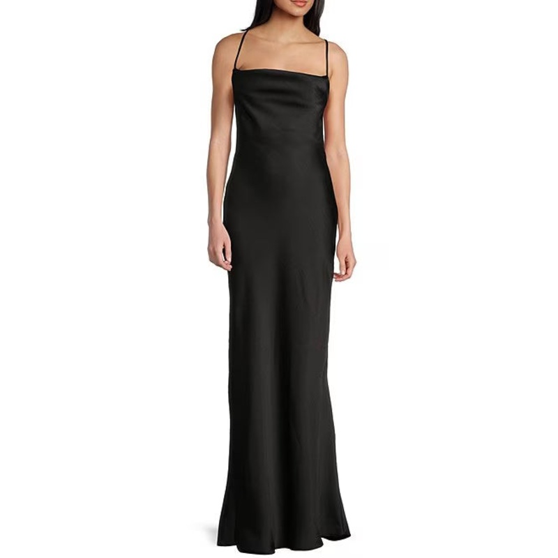 Satin high neck cross strap long prom dress