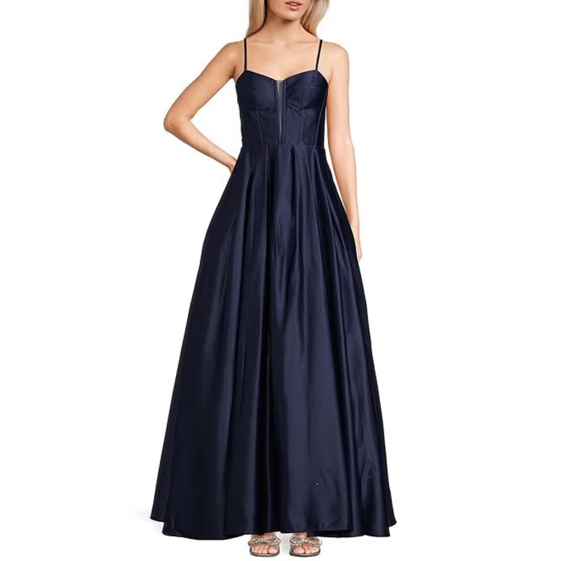 Satin illusion V-neck prom dress