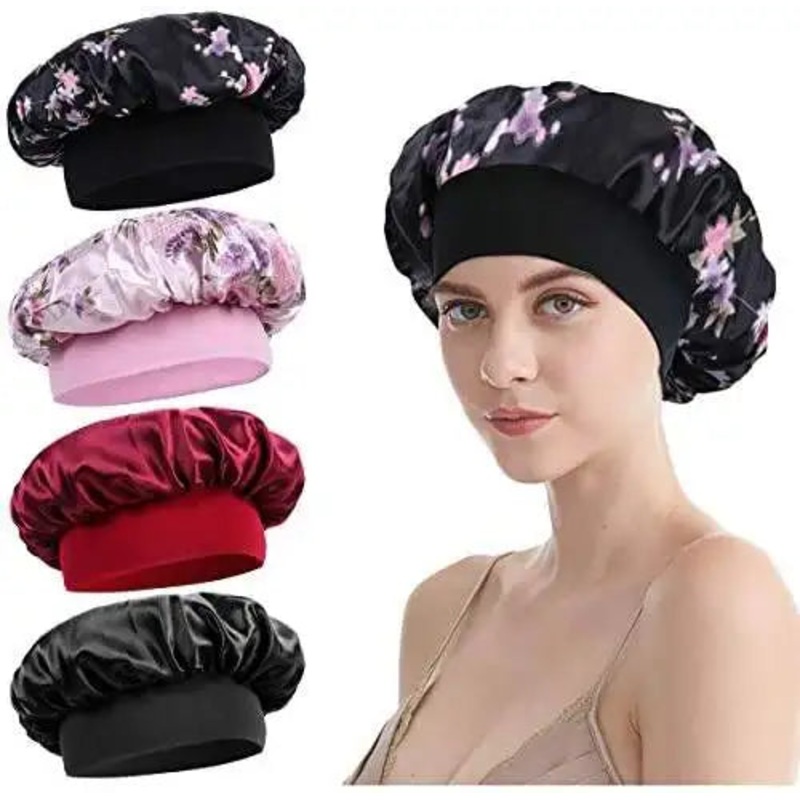 Satin Sleep Cap - 4pc SetProtect your hair and scalp when you sleep.The soft satin material prevents hair loss by stopping rubbing of your hair on your pillowPerfect Size: Sleep cap is one size fits most, it is about 11.8 inch diameter, suitable for most p