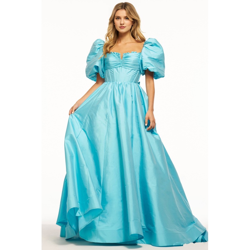 Be the first to review “Satin tight corset lantern sleeves and floor length Prom dress”