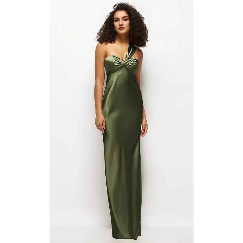 Satin twisted pattern strapless one shoulder twill extra long bridesmaid dress