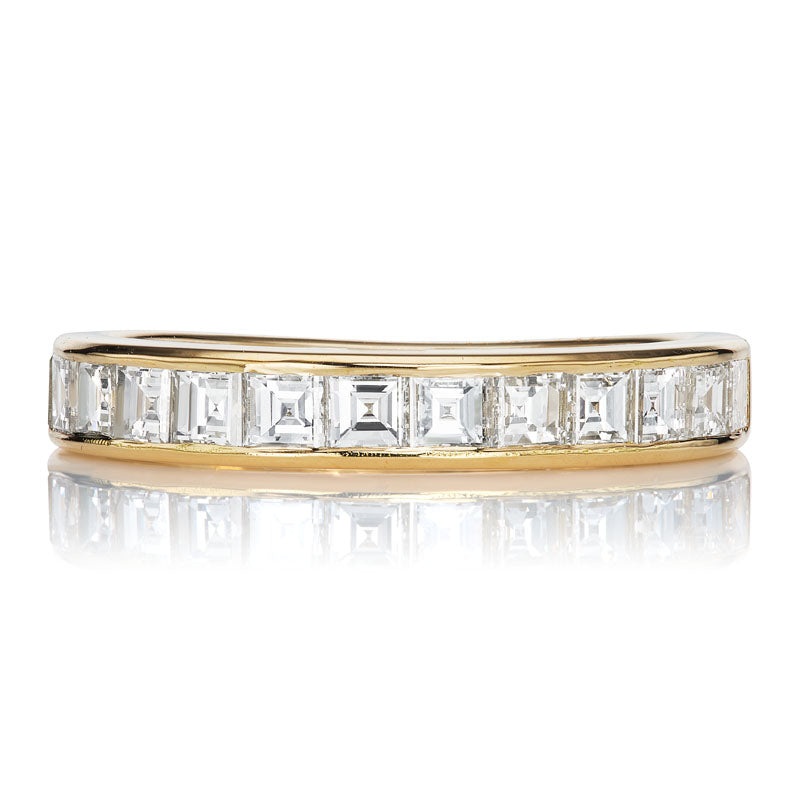 Carr Cut Half Hoop in Yellow GoldThe SawyerHalf Hoop is an AB original design made right here in NYC. This diamond band has carr cut diamonds of approximatelyF-G color, VS clarity that wraproughly halfway around the band. We currently have a limited supply