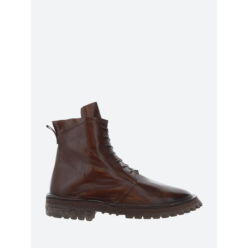 A modern take on a classic combat boot. A tall lace-up silhouette, sitting on a chunky treaded lugged sole.Tall bootLace-up closurePull loop at the heelTonal stitchingAlmond toeMaterialsUpper: leatherLining: leatherOutsole: rubberMade in ItalySize GuideMen