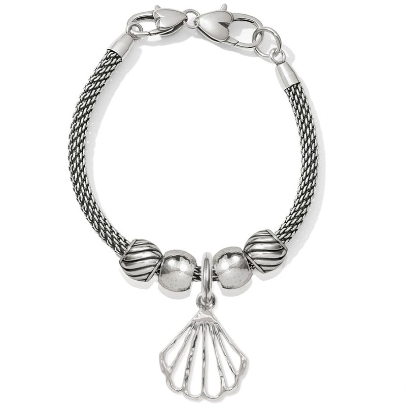 Like silvery light playing over the waves, this coastal themed bracelet is filed with charm. The beautiful silver-plated sculpted shell and beads are simply gorgeous together.