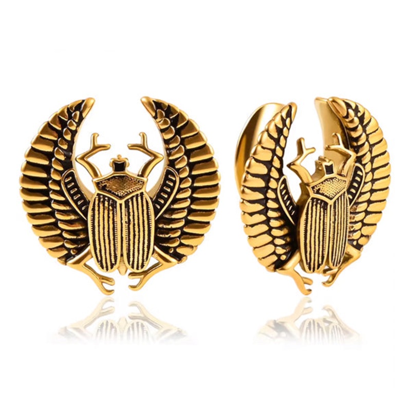 These scarab saddle spreaders are made from gold PVD coated 316L stainless steel. We recommend buying these one size smaller than the double flare plugs you normally wear. Choose your size below.