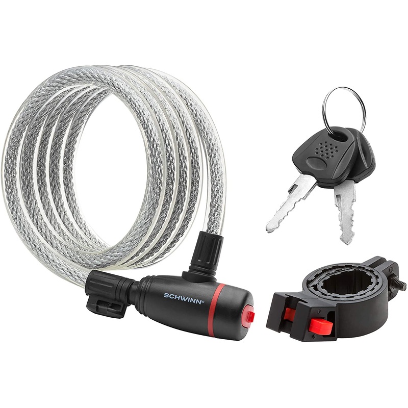 NewKey lock helps you store your bike more securely6 feet x 12 mm braided steel cable provides convenience and strengthTough protective vinyl cover offers weather resistance and prevents scratchesIncludes carrying bracket for easy storage and transportIncl
