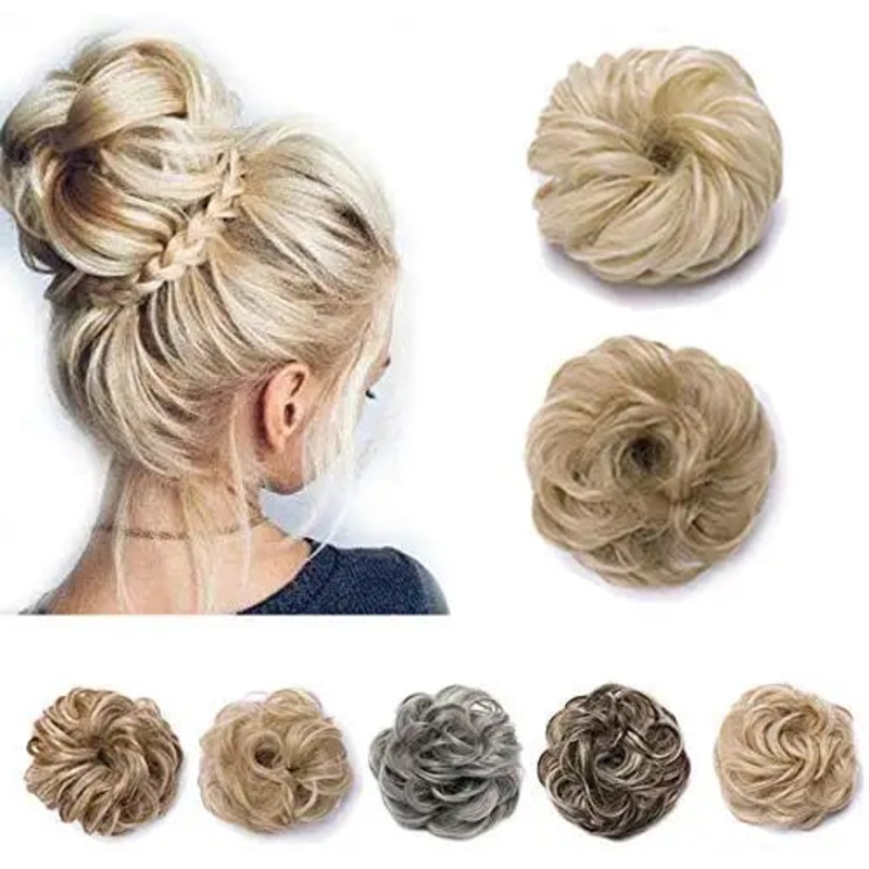 Scrunchie Hair Bun Extension Updo Hairpiece Many colours available, including grey!Easy Stretch Updo Hair Chignons with elastic band brings you an elegant decent look in just a second, perfect style for dating, prom, wedding,etc; Material100% Japanese A cl