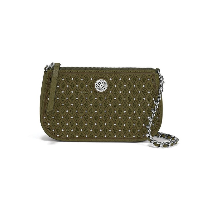 Lasered, die cut, laced and heavily stitched - this fine leather compact bag is filled with crafted features while practical with enough room for your essentials. Studded details accentuate each die-cut diamond. Casual yet strikingly worthy of conversation