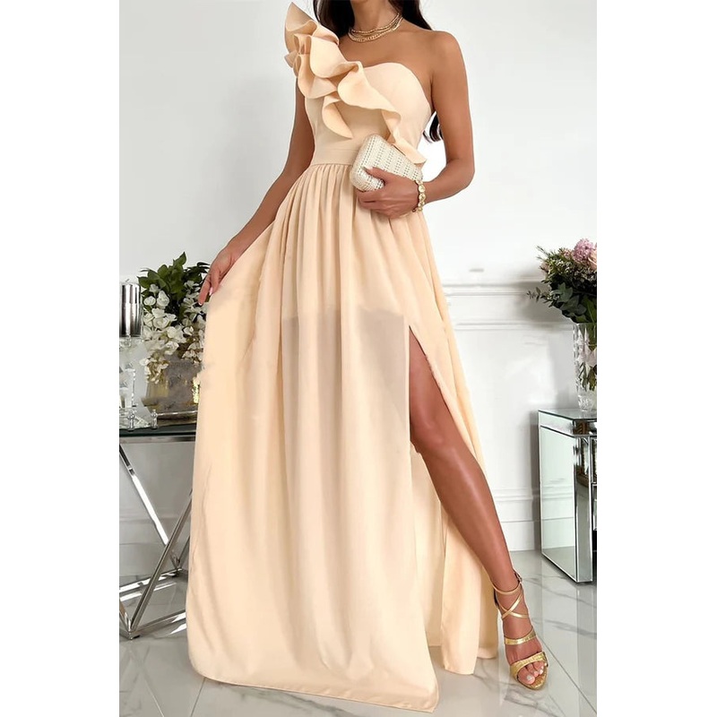 Be the first to review “Sexy and elegant printed patchwork with ruffled edge diagonal collar for evening dressing”