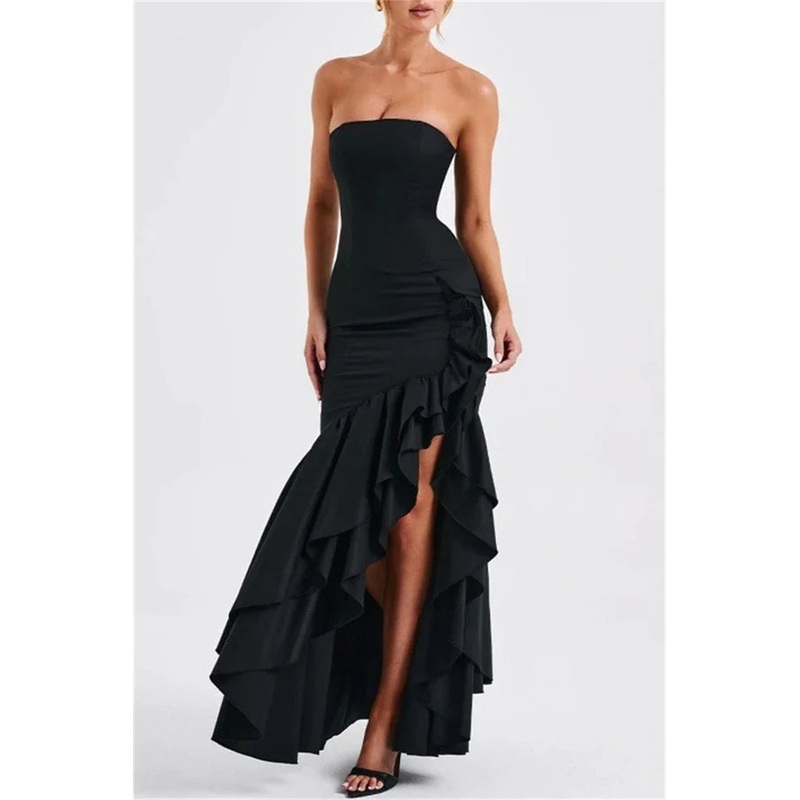 Sexy printed solid color backless strapless irregular evening dress