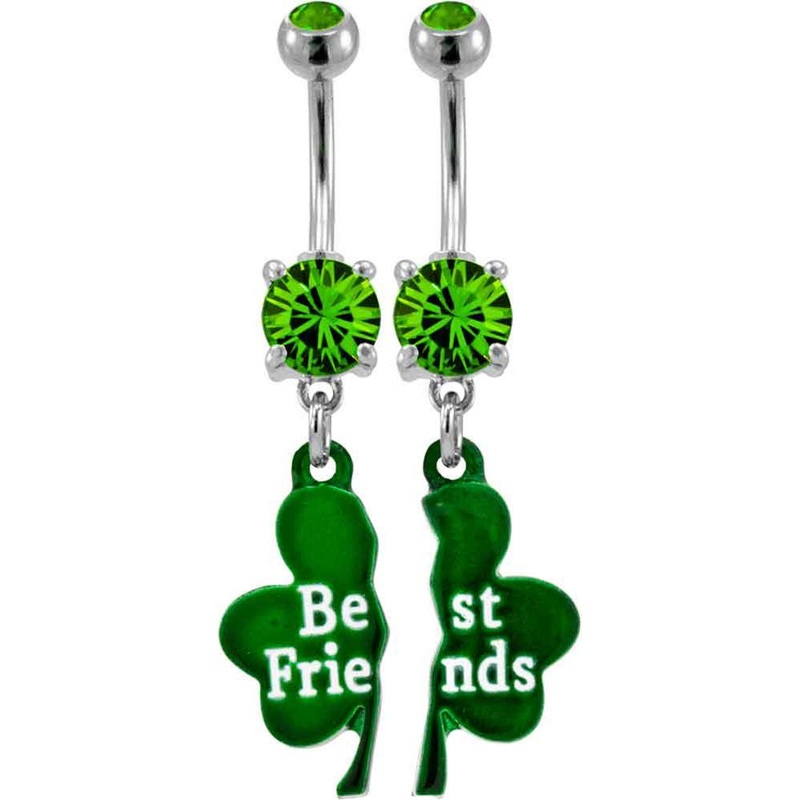 Shamrock Friendship Belly Dangles 14 gauge – 3/8″ long (10mm) Green Stainless Steel