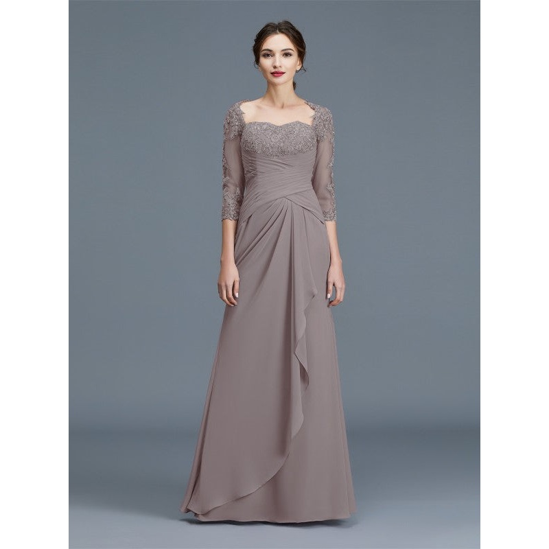 Sheath/Column 3/4 Sleeves Sweetheart Ruffles Chiffon Floor-Length Mother of the Bride Dresses