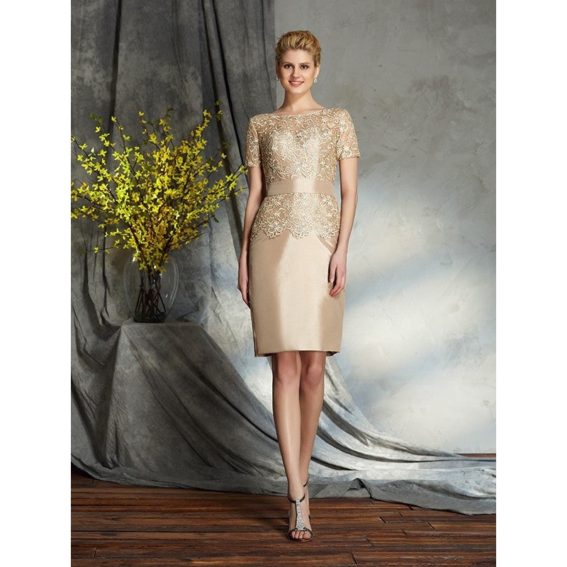 Sheath/Column Bateau Applique Short Sleeves Short Taffeta Mother of the Bride Dresses