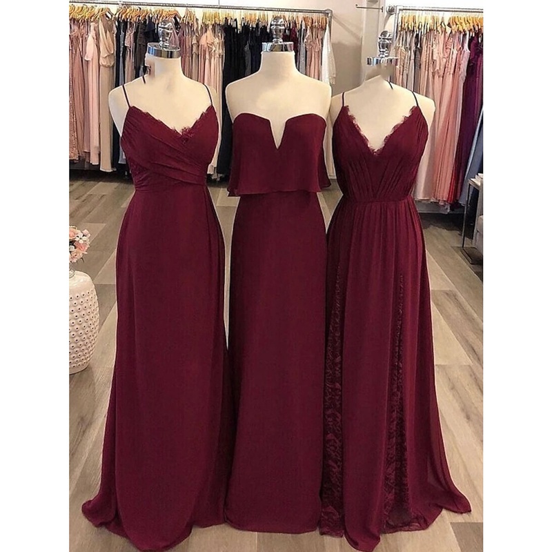 Sheath / Column Bridesmaid Dress Spaghetti Strap / Strapless / V Neck Sleeveless Vintage Floor Length Chiffon with Lace / Ruching