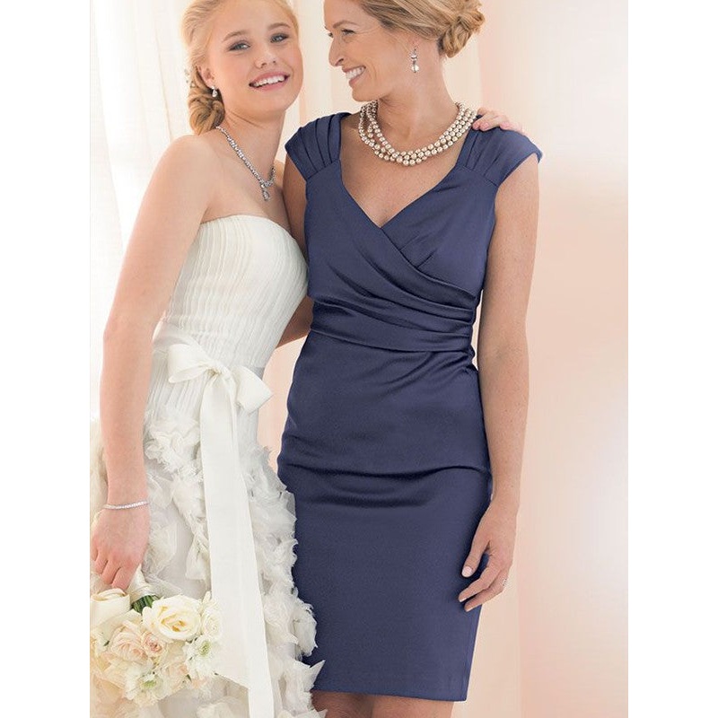 Sheath/Column Charmeuse Ruched V-neck Short Sleeves Knee-Length Mother of the Bride Dresses