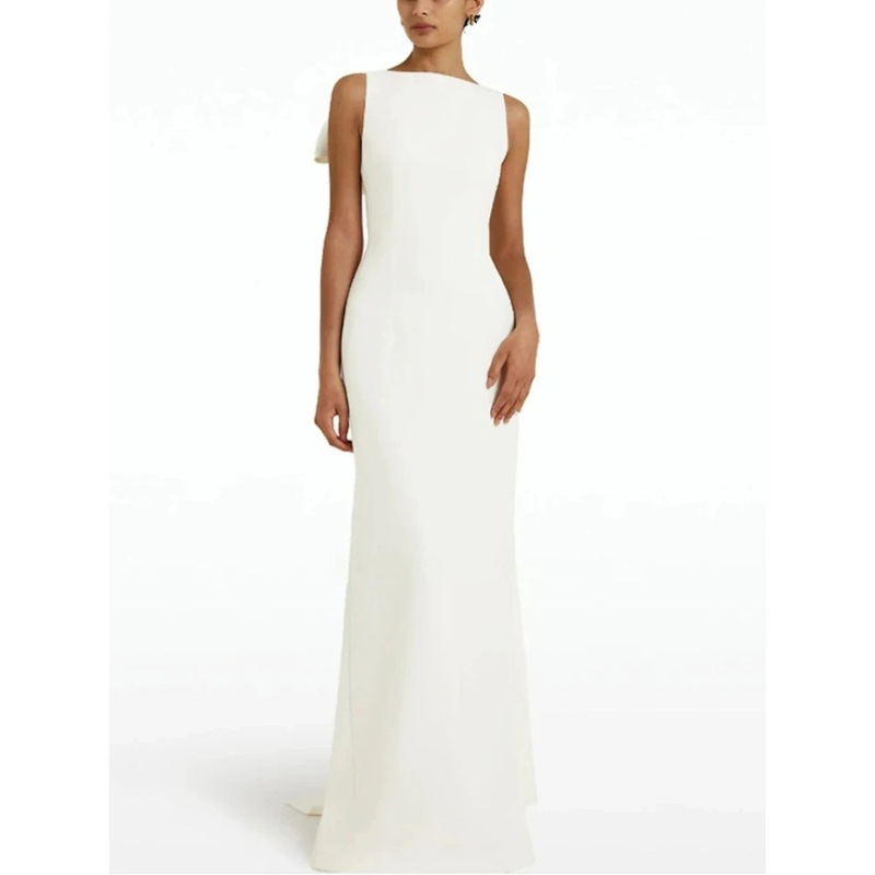 Sheath / Column Christmas Red Green Dress Evening Gown Elegant Dress Formal Sweep / Brush Train Sleeveless Jewel Neck Fabric with Bow(s) 2025
