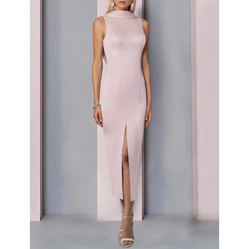 Sheath / Column Cocktail Dresses Open Back Dress Wedding Guest Semi Formal Ankle Length Sleeveless High Neck Satin Backless with Slit 2025