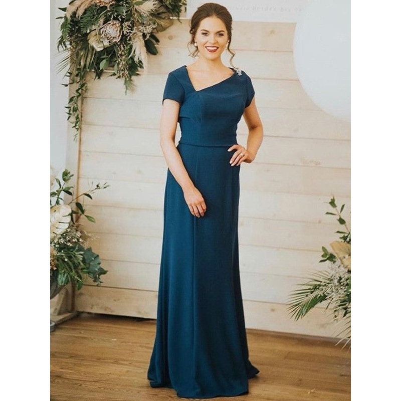 Sheath/Column Crepe Ruched Square Short Sleeves Floor-Length Mother of the Bride Dresses