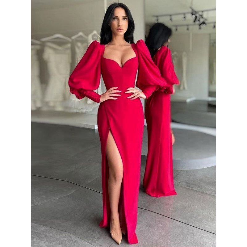 Be the first to review “Sheath/Column Crepe Ruched Sweetheart Long Sleeves Floor-Length Dresses”