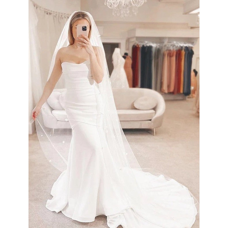 Sheath/Column Crepe Ruched Sweetheart Sleeveless Court Train Wedding Dresses