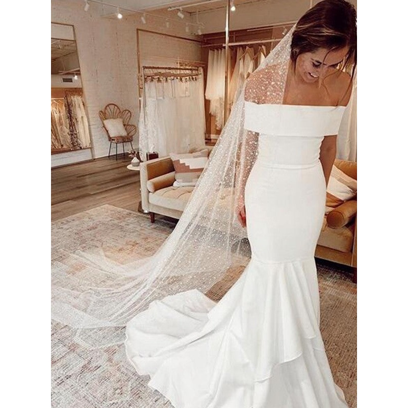 Sheath/Column Crepe Ruffles Off-the-Shoulder Sleeveless Sweep/Brush Train Wedding Dresses