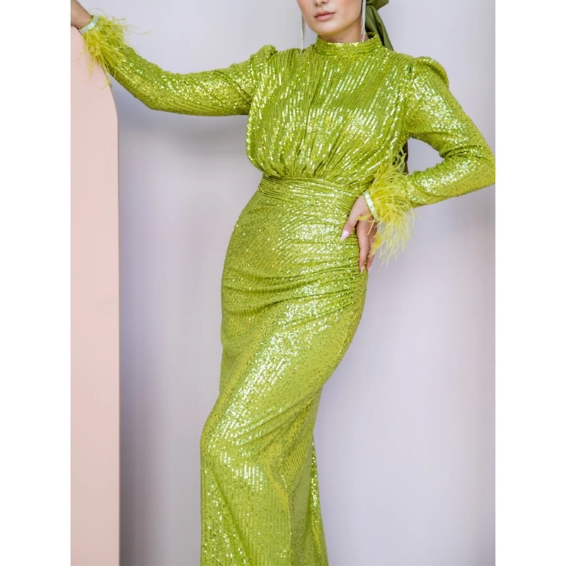 Be the first to review “Sheath / Column Evening Gown Elegant Dress Formal Ankle Length Long Sleeve High Neck Sequined with Feather Sequin 2025”