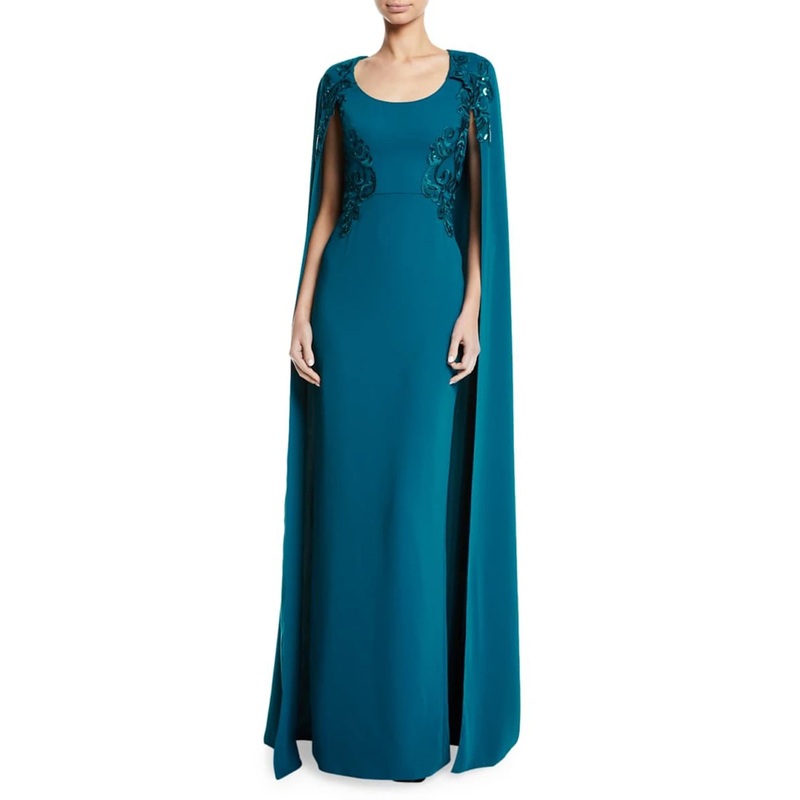 Be the first to review “Sheath / Column Evening Gown Elegant Dress Wedding Guest Wedding Party Floor Length Sleeveless Jewel Neck Capes Chiffon with Appliques”