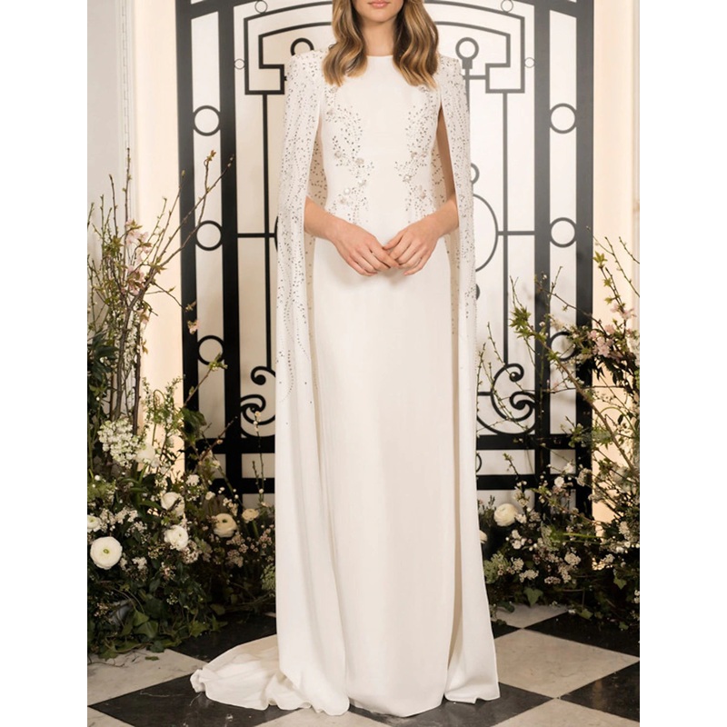 Sheath / Column Evening Gown Elegant Dress Wedding Guest Wedding Party Floor Length Sleeveless Jewel Neck Capes Chiffon with Crystals
