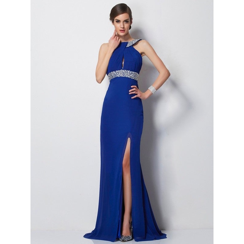 Sheath/Column High Neck Sleeveless Beading Long Chiffon Dresses