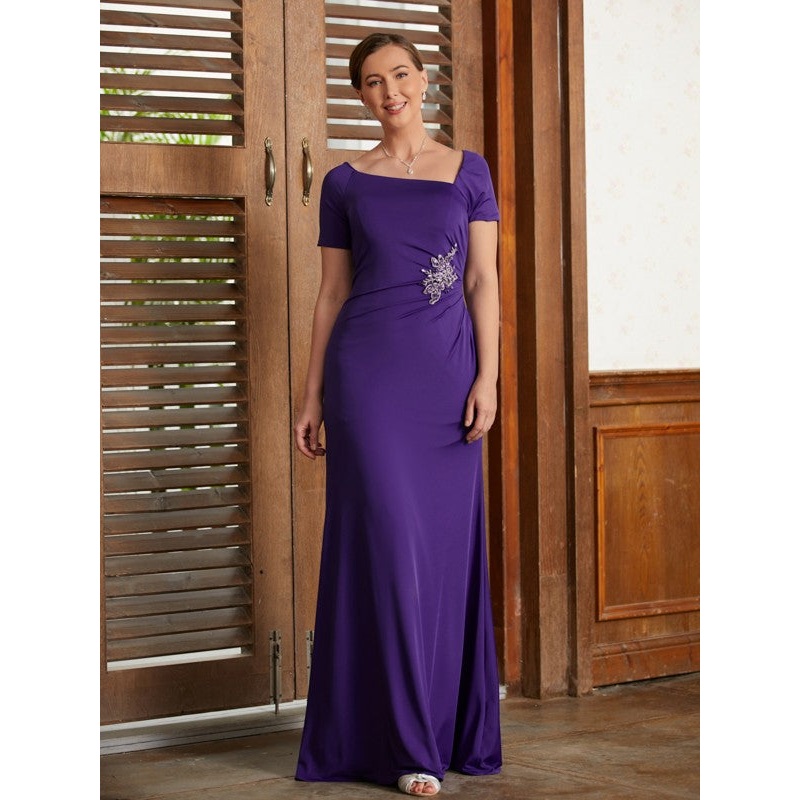 Sheath/Column Jersey Beading Square Short Sleeves Floor-Length Mother of the Bride Dresses