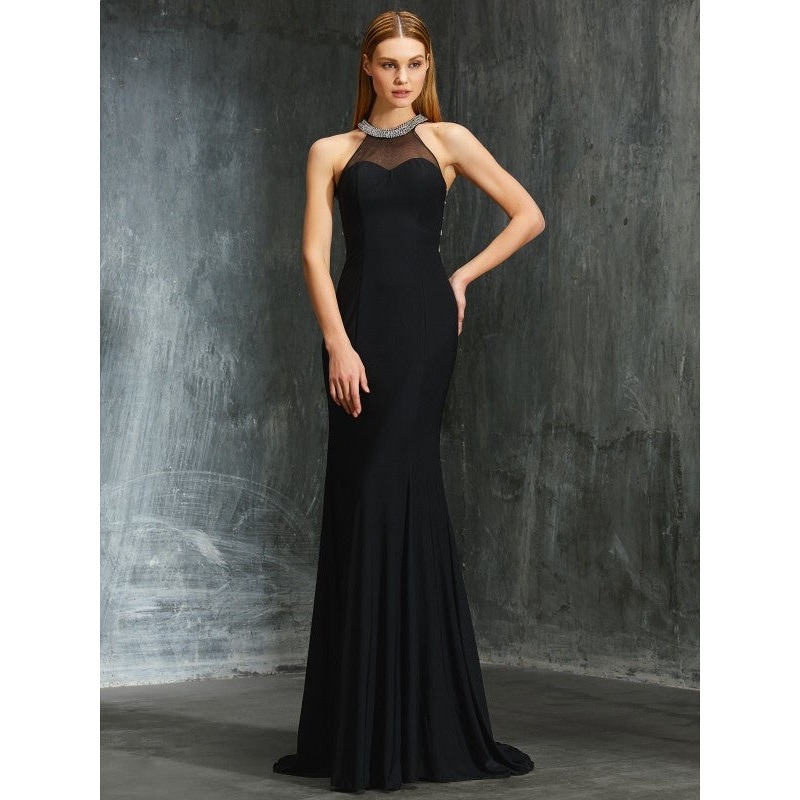 Sheath/Column Jewel Beading Sleeveless Spandex Sweep/Brush Train Dresses