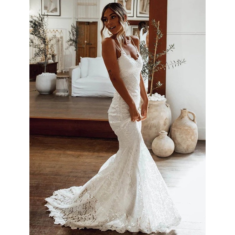 Sheath/Column Lace V-neck Sleeveless Court Train Wedding Dresses