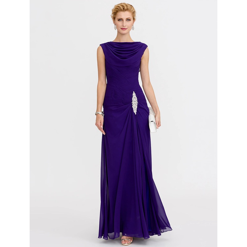 Sheath / Column Mother of the Bride Dress Color Block Lace Up Cowl Neck Ankle Length Chiffon Charmeuse Sleeveless with Criss Cross Beading