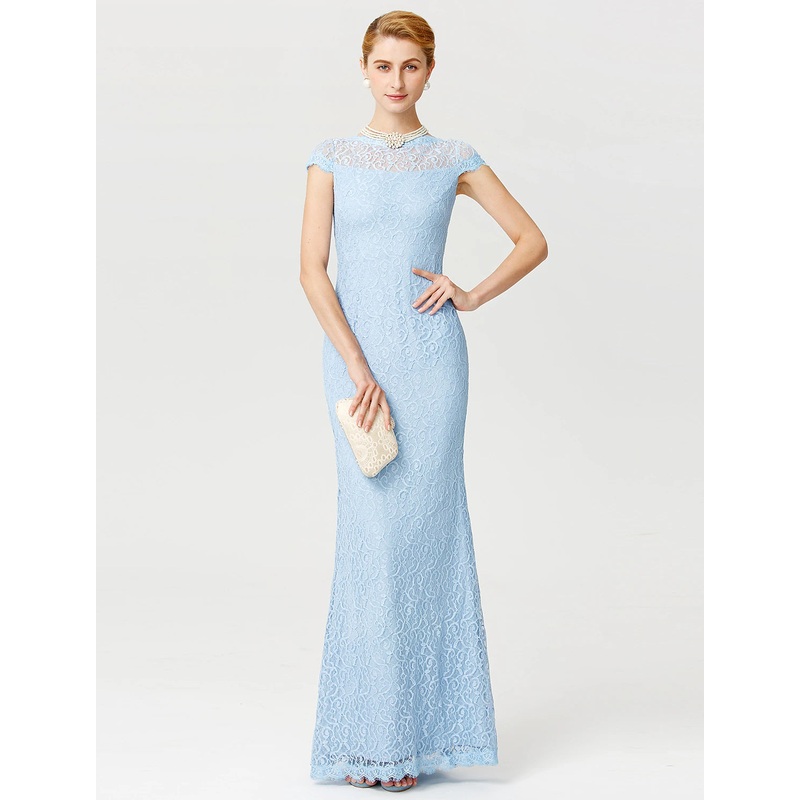 Sheath / Column Mother of the Bride Dress Elegant Illusion Neck Floor Length Lace Short Sleeve No with Lace
