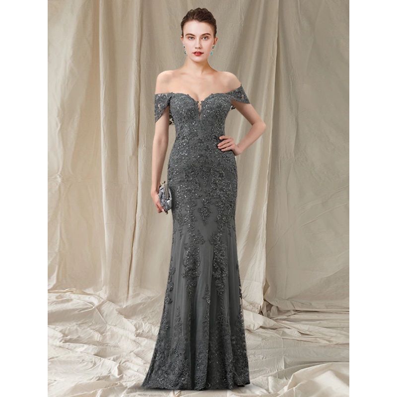 Be the first to review “Sheath / Column Mother of the Bride Dress Elegant Off Shoulder Floor Length Lace Tulle Sequined Sleeveless with Pleats Appliques”