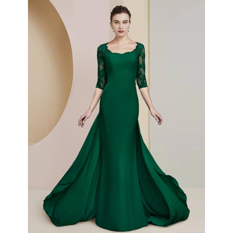 Be the first to review “Sheath / Column Mother of the Bride Dress Formal Wedding Guest Elegant Scoop Neck Floor Length Chiffon Lace Half Sleeve with Appliques” Cancel reply