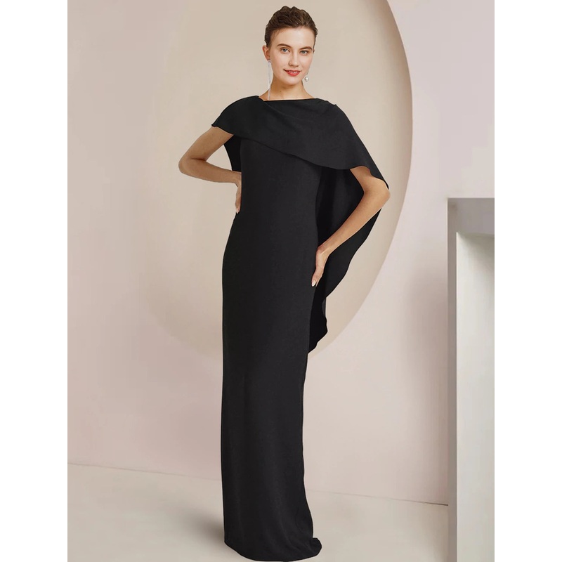 Sheath / Column Mother of the Bride Dress Formal Wedding Guest Elegant Scoop Neck Floor Length Fabric Sleeveless with Split Front