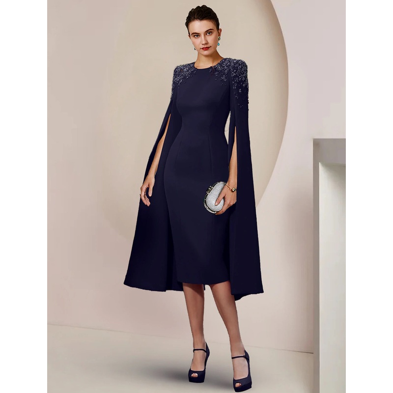 Be the first to review “Sheath / Column Mother of the Bride Dress Formal Wedding Guest Elegant Scoop Neck Knee Length Chiffon Long Sleeve with Beading” Cancel reply