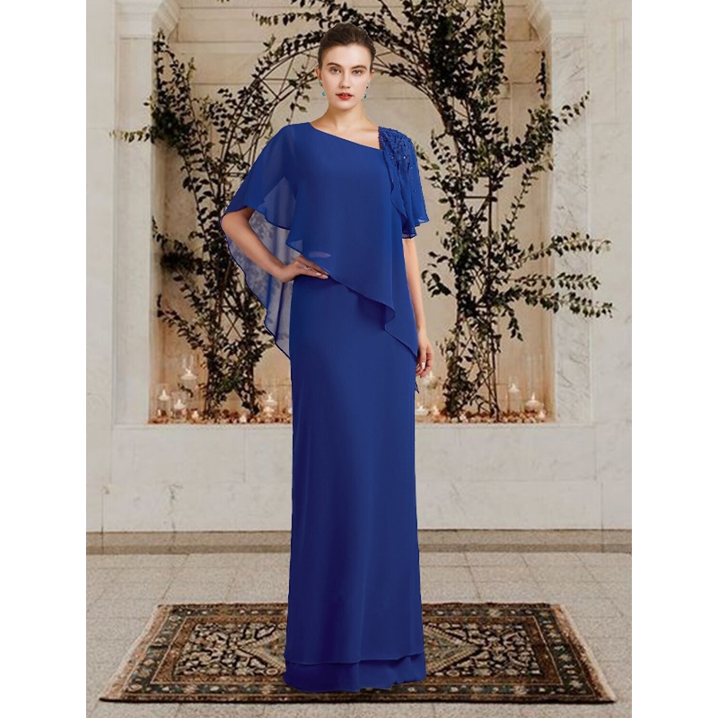 Be the first to review “Sheath / Column Mother of the Bride Dress Plus Size Elegant Bateau Neck Floor Length Chiffon Short Sleeve with Beading Ruffles” Cancel reply