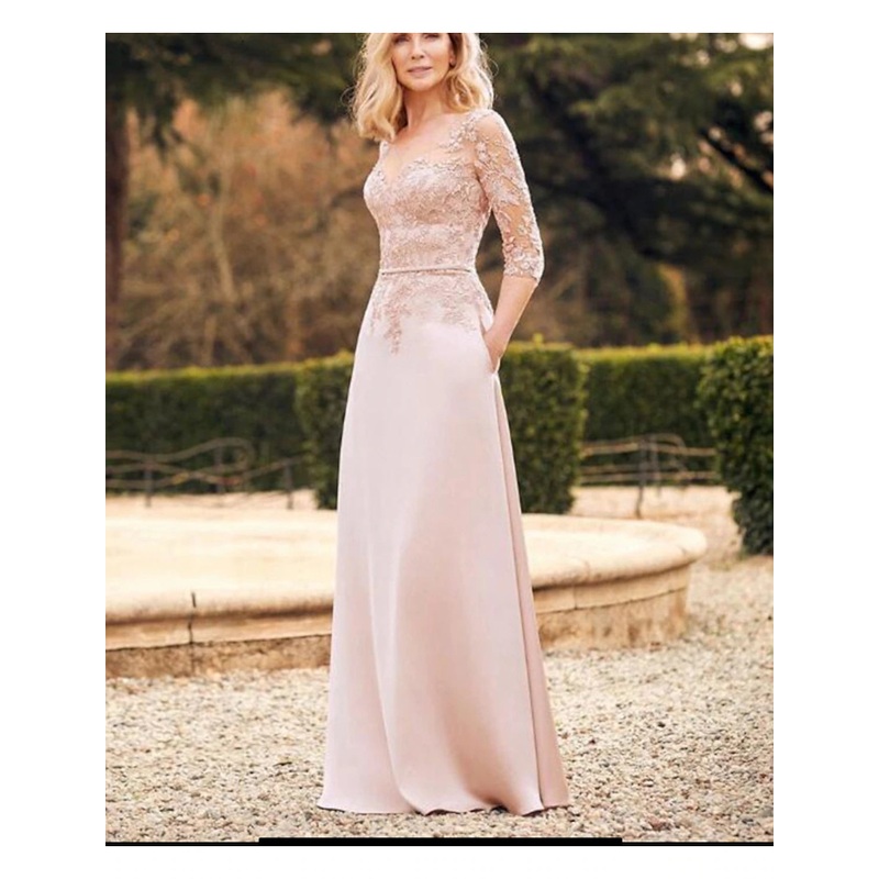Sheath / Column Mother of the Bride Dress Simple Elegant Jewel Neck Floor Length Italy Satin Long Sleeve No with Sash / Ribbon Appliques