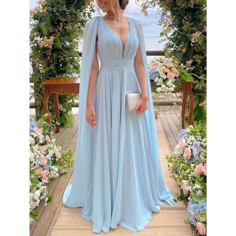 Be the first to review “Sheath / Column Mother of the Bride Dress Wedding Guest Elegant Party V Neck Court Train Chiffon Sleeveless with Pleats” Cancel reply