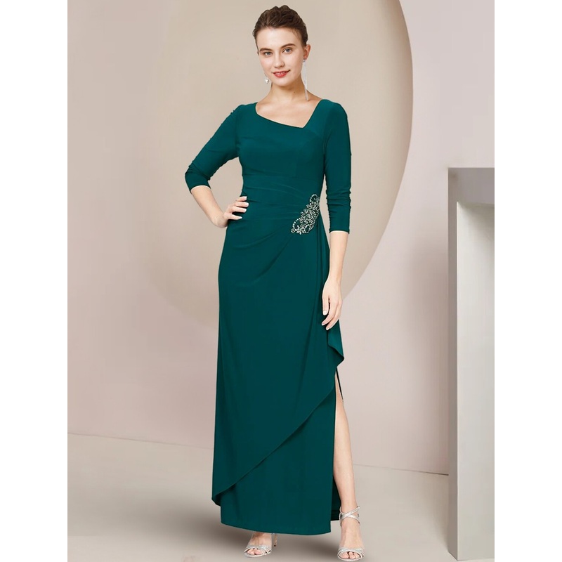 Be the first to review “Sheath / Column Mother of the Bride Dress Wedding Guest Elegant Scoop Neck Ankle Length Chiffon 3/4 Length Sleeve with Crystals Ruffles Split Front”