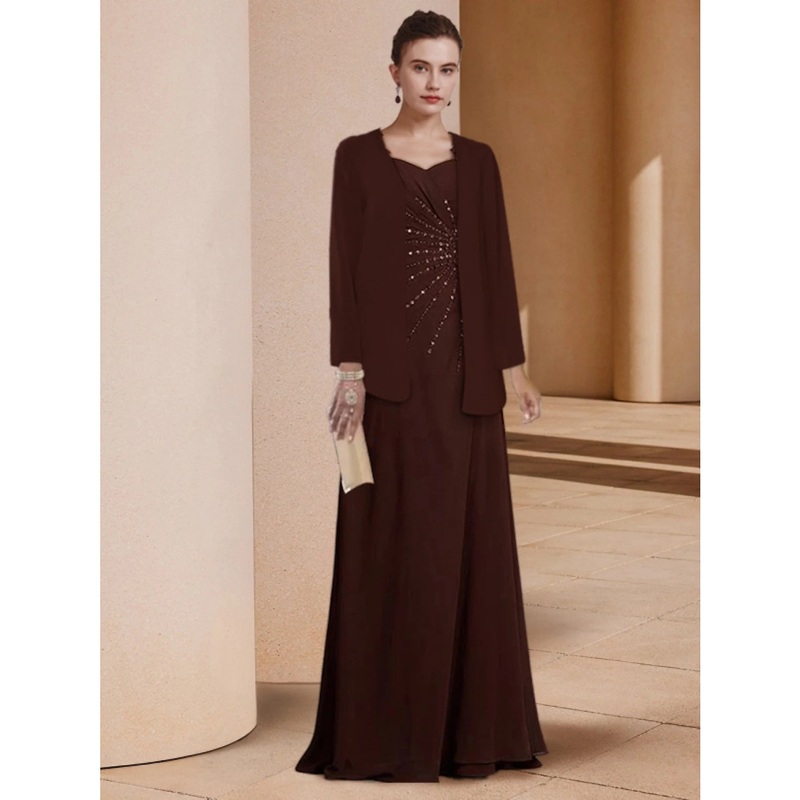Be the first to review “Sheath / Column Mother of the Bride Dress Wedding Guest Elegant Scoop Neck Floor Length Chiffon Long Sleeve with Sequin Ruching” Cancel reply