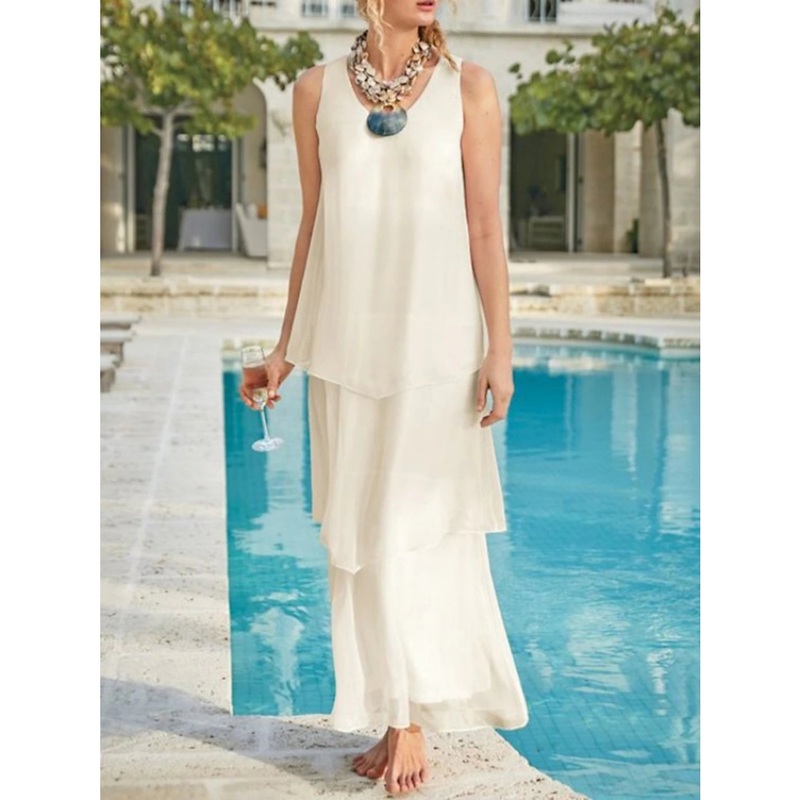 Be the first to review “Sheath / Column Mother of the Bride Dress Wedding Guest Elegant Simple V Neck Ankle Length Chiffon Sleeveless with Tier Solid Color” Cancel reply