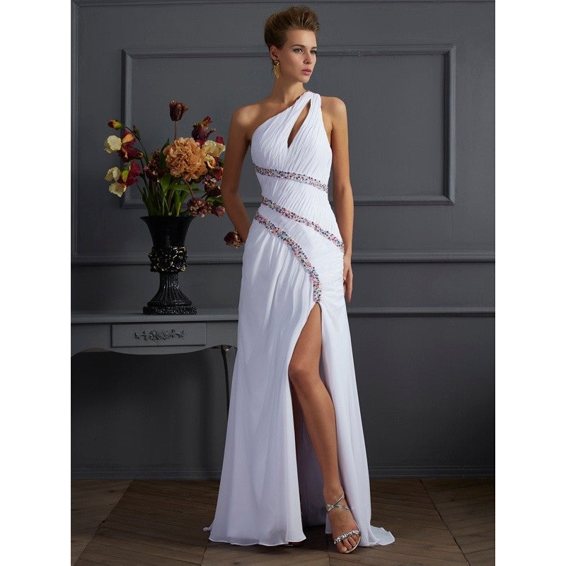 Sheath/Column One-Shoulder Sleeveless Beading Long Chiffon Dresses