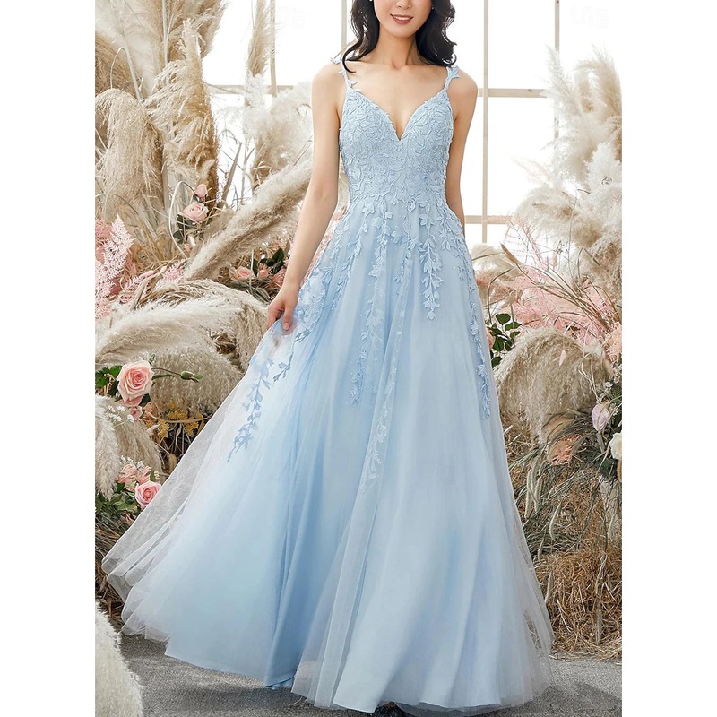 Sheath / Column Prom Dresses Elegant Dress Formal Prom Floor Length Sleeveless Spaghetti Strap Tulle with Appliques