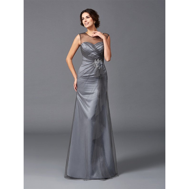 Sheath/Column Scoop Beading Sleeveless Long Net Mother of the Bride Dresses