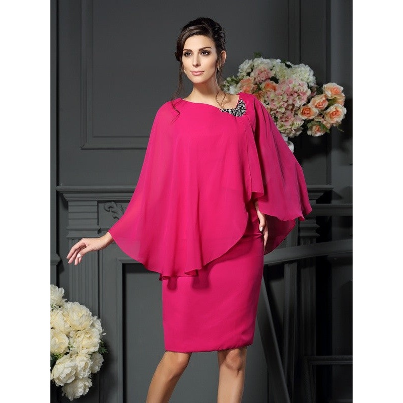 Sheath/Column Scoop Beading Sleeveless Short Chiffon Mother of the Bride Dresses