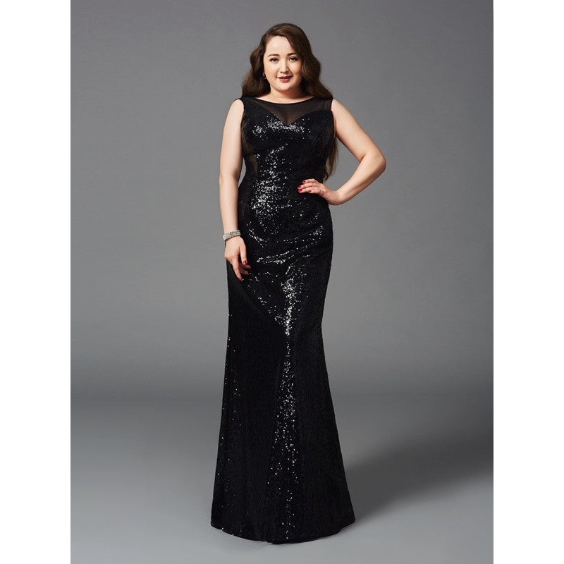 Sheath/Column Scoop Sleeveless Long Sequins Plus Size Dresses