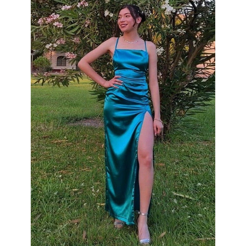 Sheath/Column Silk like Satin Ruched Spaghetti Straps Sleeveless Floor-Length Dresses